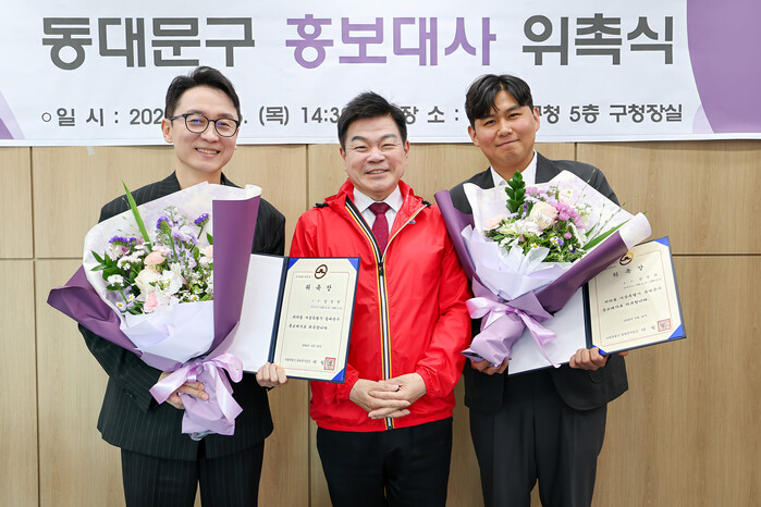 [시민일보 = 이대우 기자] 동대문구(구청장 이필형)가 최근 AI·인지과학 전문가 김상균 교수와 지역 콘텐츠 인플루언서 ‘동대문가이드’ 운영자 장영수 대표를 홍보대사로 신규 위촉했다.