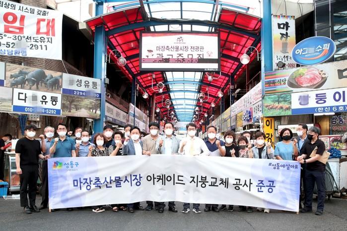 별도의 설계용역을 거쳐 올해 1월 말부터 공사를 개시, 약 6개월에 걸쳐 추진된 공사는 안전하게 마무리됐으며, 구는 지난 21일 마장축산물시장 상인회 등 관계자들 및 주민들과 준공식을 개최했다.