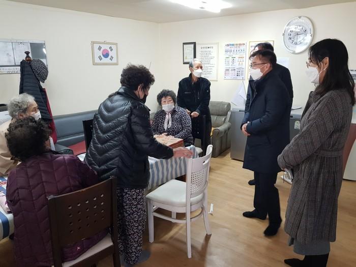 여운성 경기 동두천시 보산동장은 지난 3일 취임 후 ‘싸리말 경로당’을 비롯해 8개 경로당을 방문하고 업무를 시작했다. 사진은 이날 여 동장 및 관계자들이 경로당을 방문해 과일상자를 전달하고 애로사항을 확인하고 있는 모습. (사진제공=동두천시청)