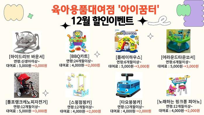 [부산=최성일 기자] 부산시 사하구 다대2동에 소재한 두송종합사회복지관(관장 김동현)은 지역주민을 위해 육아용품대여점[아이꿈터]을 운영하고 있다. 육아용품대여점 [아이꿈터]에서는 매월 육아용품 및 대형완구 일부 품목 대여료 할인과 이용 후기 작성 이벤트를 진행 하고 있다.