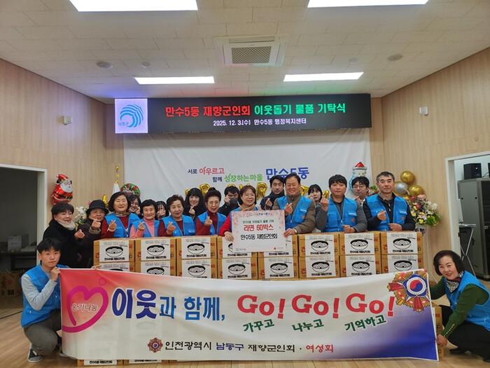 [인천=문찬식 기자] 인천 남동구 만수5동 행정복지센터는 동 재향군인회(회장 배정용)로부터 홀몸 어르신 등 취약계층 지원을 위한 라면 60상자를 전달받았다고 밝혔다.