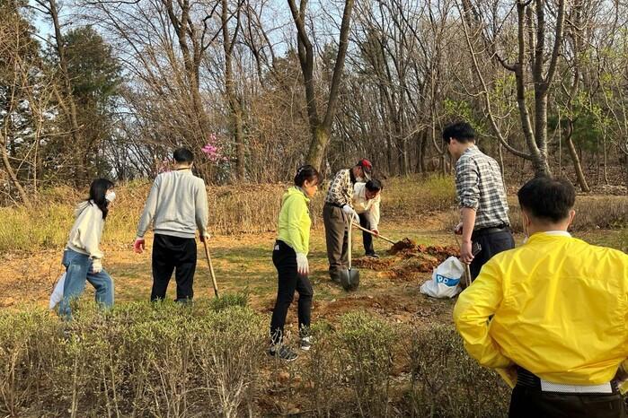 [시민일보 = 이대우 기자] 서울 강동구(구청장 이수희) 명일2동이 최근 구봉산 산책길 일대에 ‘칸나심기 행사’를 진행했다.