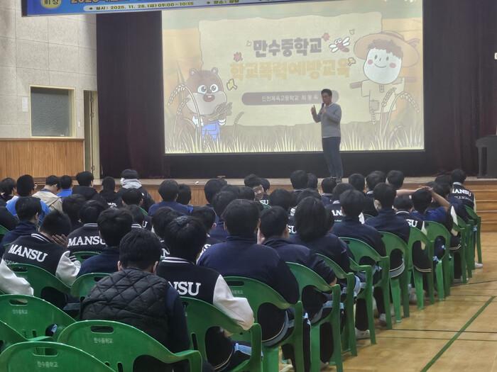 [인천=문찬식 기자] 인천동부교육지원청(교육장 김기춘)은 11월 14일부터 12월 16일까지 관내 초·중등 9개 학교 학생 약 1,600명과 교사 60여 명을 대상으로 ‘2025 학교로 찾아가는 맞춤형 학교폭력 예방 교육’을 운영했다.