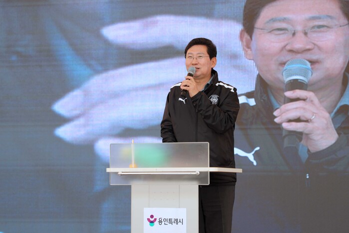 | ▲ 28일 동백호수공원에서 열린 동백2동 주민자치 작품발표회에 참석한 이상일 시장이 축사를 하고 있다. |