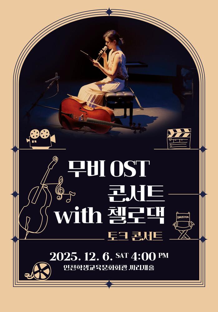 [인천=문찬식 기자] 인천광역시교육청학생교육문화회관(관장 김문곤)에서는 12월 6일(토) 오후 4시 대공연장 싸리재홀에서 ‘무비 OST 콘서트 with 첼로댁’을 개최한다.
