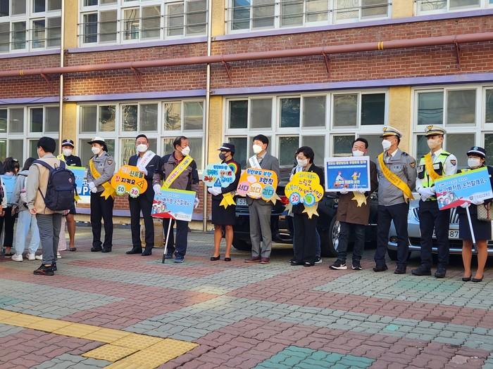 [인천=문찬식 기자] 인천 부평구가 20일 부평동초등학교에서 어린이 교통안전 릴레이 캠페인을 전개했다.