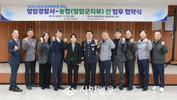 | ▲ 영암경찰서, 24일 영암경찰서 3층 월출마루에서 농협은행 영암군지부와 보이스피싱 범죄예방을 위한 영암경찰서-농협은행 간 업무협약 체결 기념촬영 / 영암경칠서 제공. |