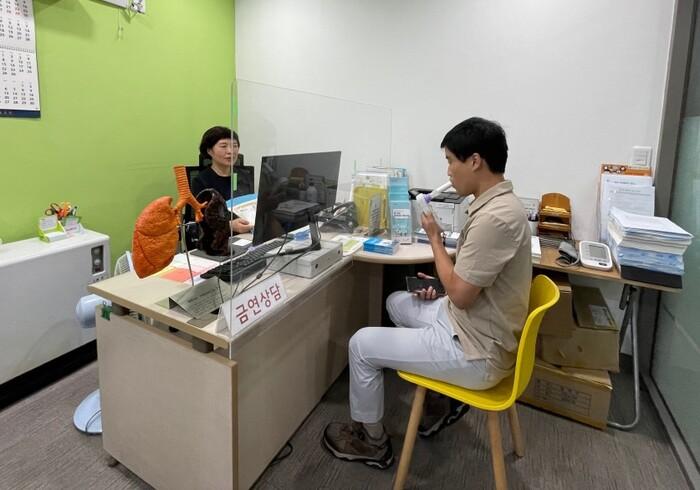 | ▲ 성동구보건소 금연클리닉에서 주민이 금연상담을 하는 모습. (사진=성동구청 제공) |