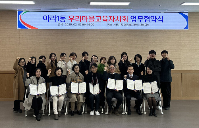 [인천=문찬식 기자] 인천 서구 아라1동 행정복지센터(동장 이지영)와 아라1동 주민자치회(회장 김래호)가 지난 3일 ‘아라1동 우리마을교육자치회’ 업무협약을 체결하였다.