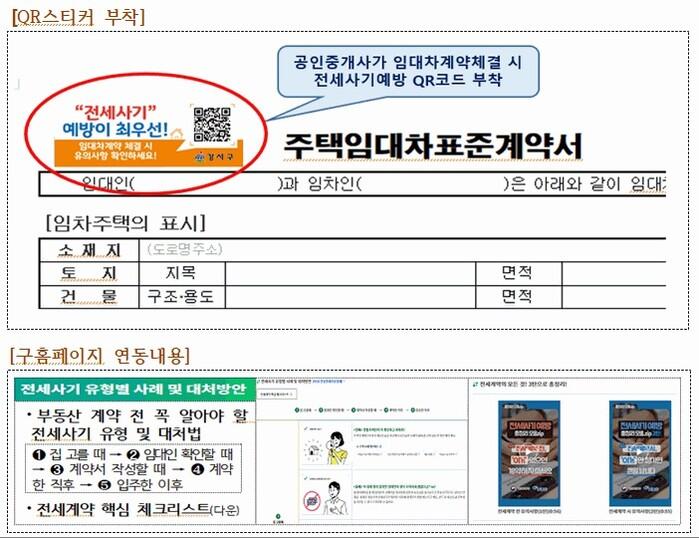 지역내 부동산중개업소를 대상으로 부동산 공정거래 질서 확립을 당부하는 '전세사기 근절 서한문'과 전세사기예방 구 홈페지와 연동된 'QR 스티커'를 배부해 공인중개사가 임대차계약 체결 시 임차인의 계약서에 부착하도록 유도할 계획이다.