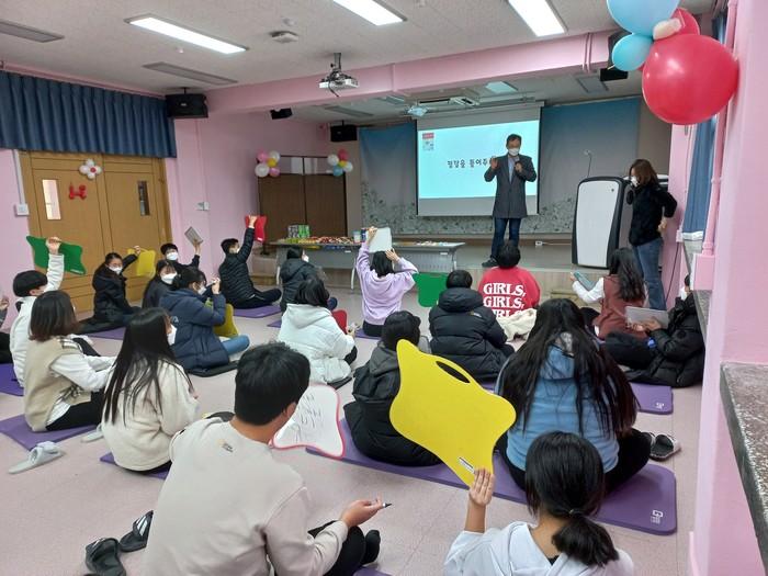경기 여주 흥천중학교는 최근 학생들의 1년간의 독서 활동을 돌아보는 독서 골든벨 행사를 개최했다. 행사는 10권의 권장도서를 바탕으로 다양한 퀴즈를 푸는 방식으로 진행됐다. 사진은 독서 골든벨 행사가 진행되고 있는 모습.(사진제공=경기여주교육지원청)