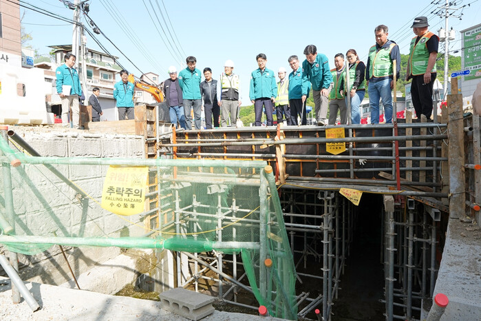 모개미천에서는 하천 통수단면 확보와 둑 정비 상태를 중점적으로 점검했으며, 장마 이전 주요 공정의 조속한 마무리를 당부했다.