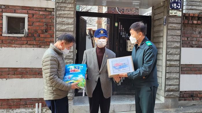 경기 수원시 장안구 조원1동은 최근 6.25 참전용사 3가구를 방문해 위문품을 전달하고 안부를 확인했다. 김근태 조원1동장과 김재선 동대장은 감사 인사와 함께 육군 51사단에서 전한 연말 위문품과 동에서 준비한 백미 등을 전달했다. 사진은 관계자들이 참전용사에게 위문품을 전달하고 있는 모습. (사진제공=장안구청)