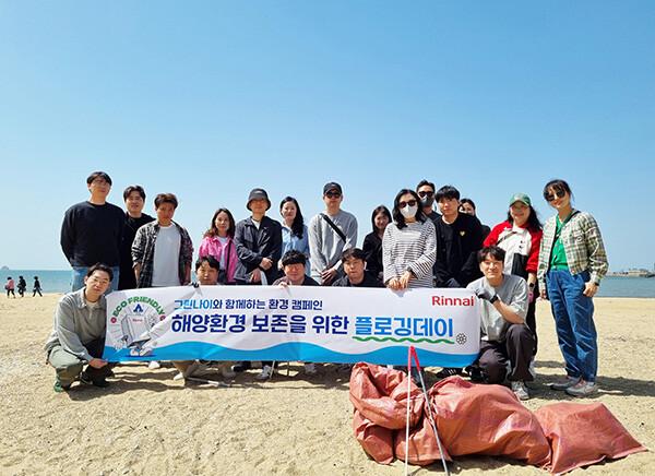 | ▲ 린나이 임직원들이 안산 방아머리 해변에서 플로깅 활동을 진행했다. |
