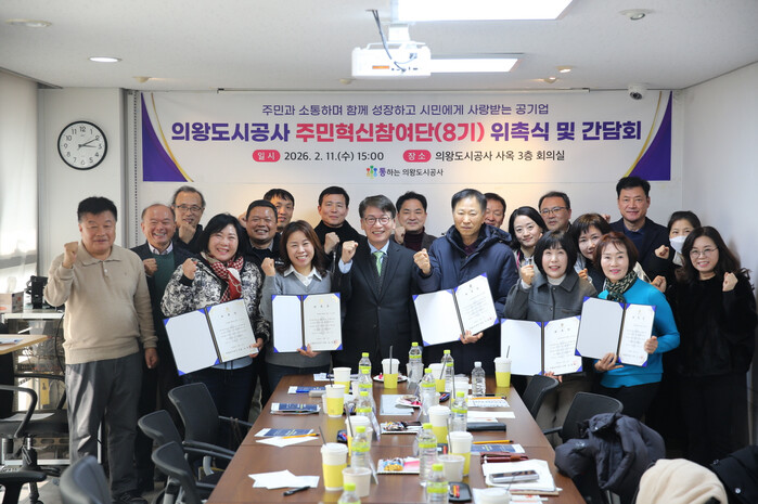 노성화 사장은“의왕도시공사 제8기 주민혁신참여단으로 함께해주신 위원들에게 감사드리며, 병오년 새해 첫 간담회를 통해 공사 경영 발전에 대한 건설적인 의견 수렴을 하게 돼 많은 도움이 됐다”며,“주민혁신참여단 운영을 통해 시민과의 소통과 고객 중심 경영에 앞장서고, 지역사회와 적극 협력해 시민에게 사랑받는 최고의 공기업으로 거듭나겠다.”고 밝혔다.