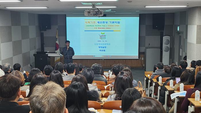 이번 연수는 2026학년도 변경된 사학기관 예산편성 지침을 중심으로 ▲학교회계·법인회계 예산편성 기본사항 ▲예·결산 반복 지적 사례 ▲실무 중심 교육 내용을 다뤄 회계 투명성과 업무 효율성을 높였다.