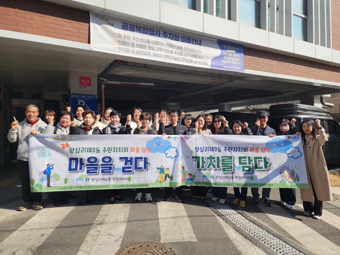 성동구 왕십리제2동 주민자치회가 최근 2027년 주민자치회 의제 개발을 위한 ‘마을 탐방’과 ‘의제 발굴 워크숍’을 진행했다. 이번 행사는 ‘마을을 걷다, 가치를 담다’라는 주제 아래, 우리 동네의 숨겨진 가치를 찾고 이를 기반으로 2027년 자치계획 수립을 위한 의제 발굴을 위해 기획됐다. 사진은 자치회 관계자들이 마을탐방을 진행하고 기념 촬영을 하는 모습. (사진=성동구청 제공)