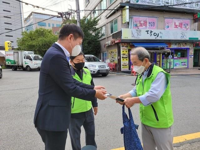 경기 수원시 영통구 원천동 지역사회보장협의체가 23일 아주대대학거리 일대에서 동절기 대비 복지사각지대 집중 발굴 캠페인을 전개했다. 이날 참가자들은 편의점, 음식점 등 지역내 상가를 방문해 홍보 리플릿 및 마스크 등을 지역 주민들에게 배부하며 복지사각지대 발굴에 대한 관심과 적극적인 참여를 당부했다. 사진은 홍보물을 배부하는 모습. (사진제공=수원시 영통구청)