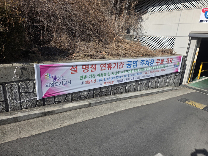 | ▲ 의왕도시공사, 설 명절 맞아 공영주차장 무료 개방 현수막 /사진제공=의왕시 |