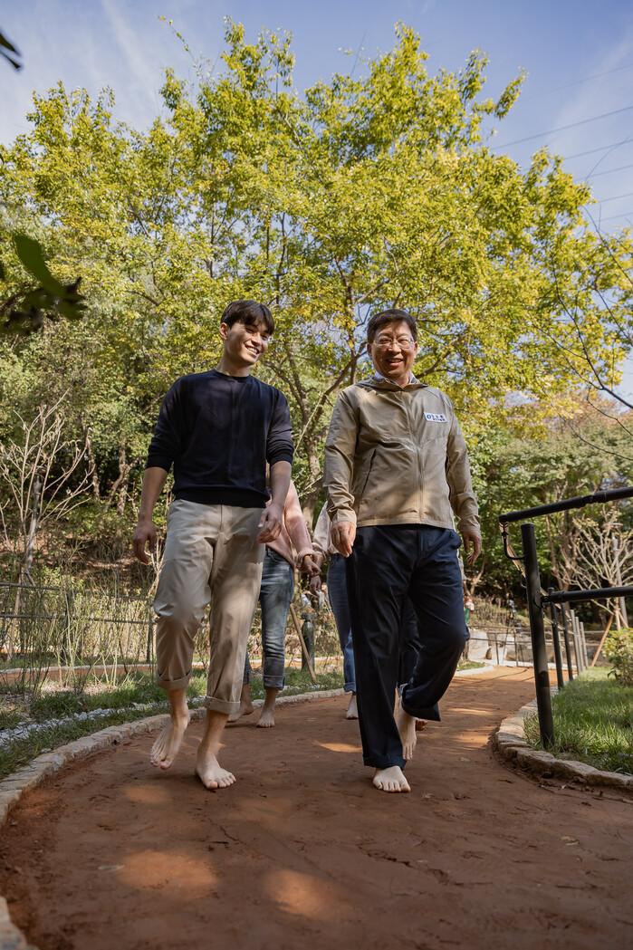 이에 구는 안전하게 맨발로 산책할 수 있도록, 아차산 지형에 맞는 ‘정원맨발길’과 ‘아차산맨발길’을 조성했다.