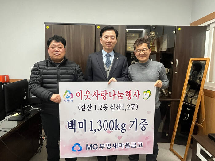 김봉균 부평새마을금고 이사장은 “주변의 소외된 이웃들이 따뜻한 설 명절을 보내길 바라는 마음으로 이번 나눔을 준비했다”며 “앞으로도 지속적인 관심과 지원을 통해 지역사회 공헌 활동에 힘쓰겠다”고 전했다.