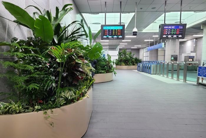 구는 역사 내 유휴 공간에 대형 플랜터(planter, 화분) 10개를 설치하고 몬스테라, 떡갈잎고무나무, 대나무야자 등 30종의 공기정화식물 580본을 심었다.