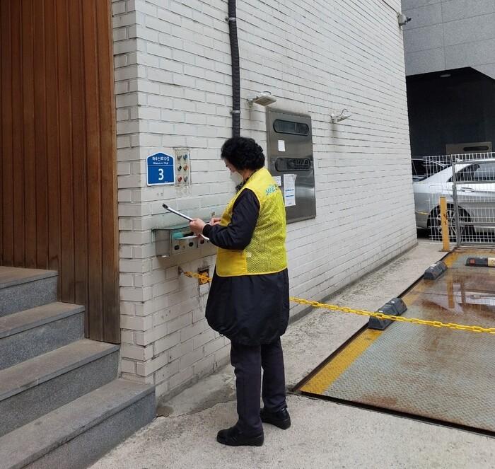 | ▲ 방범시설물을 점검하는 구석구석 안전모니터링 단원. (사진=마포구청 제공) |