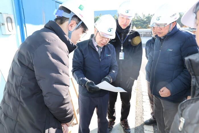 | 김성훈 이사장과 직원들이 사전 안전점검 사항을 확인하고 있다. [사진=인천환경공단] |
