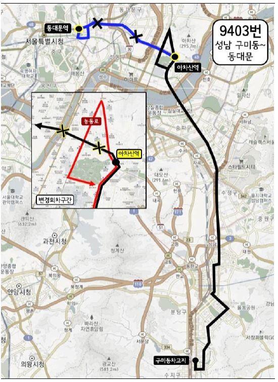 | ▲ 9403 변경 노선. (사진=광진구청 제공) |