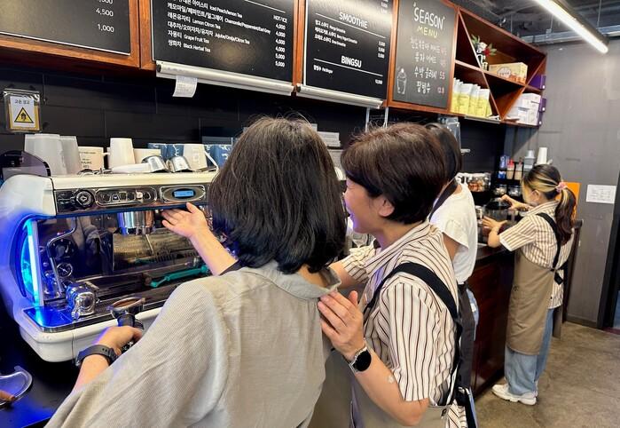 | ▲ 성동구가 오는 24일부터 2023년 제 2기 바리스타 양성과정 교육생을 선착순 모집한다. 사진은 바리스타 양성과정 현장실습 교육을 받고 있는 모습 (사진=성동구청 제공) |