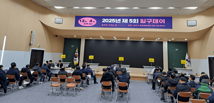 [인천=문찬식 기자] 인천 연수구(구청장 이재호)는 지난 4일 구청 대회의실에서 ‘구인·구직자가 만나는 현장! 2025년 제5회 일구데이’를 개최했다.