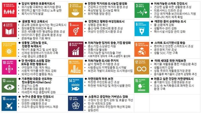 | ▲ 성동구 지속가능발전목표(SD-SDGs)를 나열한 도표. (사진=성동구청 제공) |