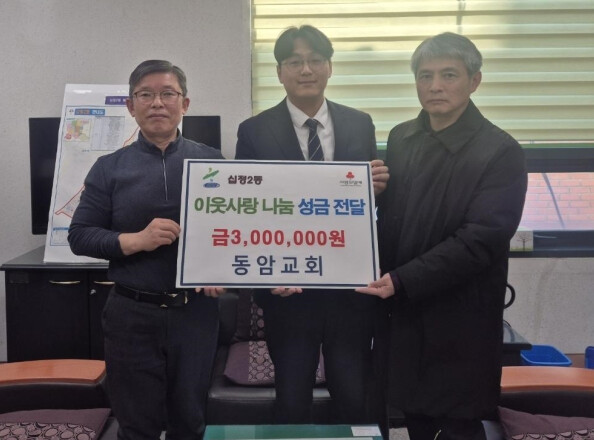 [인천=문찬식 기자] 인천 부평구 십정2동은 지난 3일 동암교회로부터 설 명절을 맞아 이웃사랑 나눔 성금 300만 원을 기탁받았다고 밝혔다.