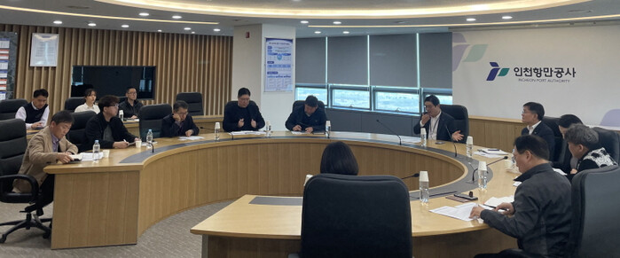 | 인천항만공사 항만운영실장과 터미널 운영사 관계자들이 ‘인천항 컨테이너 터미널 운영사 협의회’를 하고 있다. [사진=인천항만공사] |