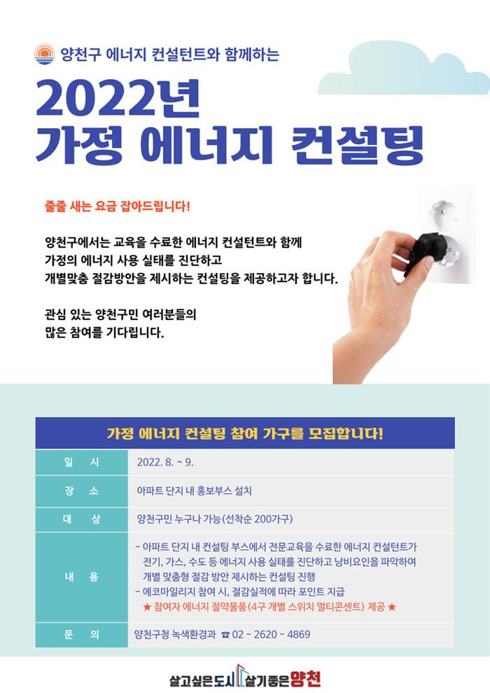 | ▲ 가정 에너지 진단 무료 컨설팅 운영 홍보 포스터. (사진제공=양천구청) |