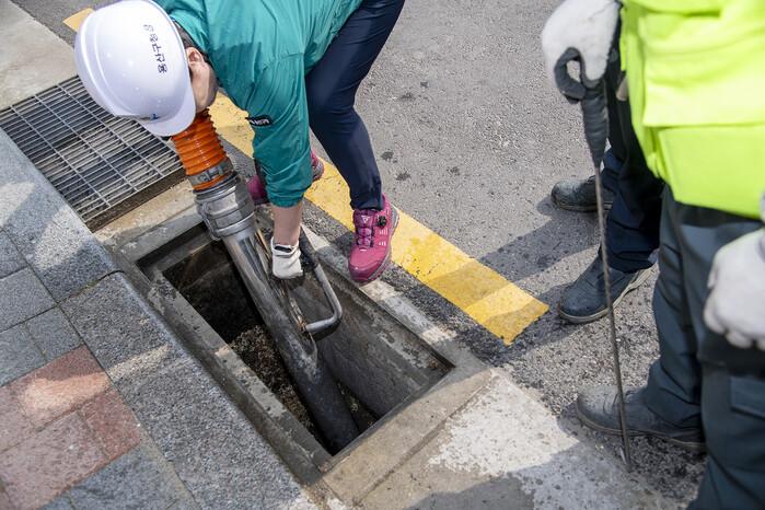 구는 여름철 풍수해 피해 예방과 악취 저감을 위해 지난달부터 상습 퇴적 구간과 민원 발생 구간 내 하수관 세정과 악취 차단장치 설치 작업을 추진하고 있다.