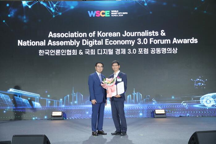 [시민일보 = 박소진 기자] 강서구(구청장 진교훈)가 최근 경기 고양시 킨텍스에서 열린 ‘2024 월드 스마트시티 엑스포(WSCE 2024)’에서 스마트도시 조성 사업 성과를 인정받아 한국언론인협회·국회 디지털 경제3.0 포럼 공동명의상 지자체 부문을 수상했다.