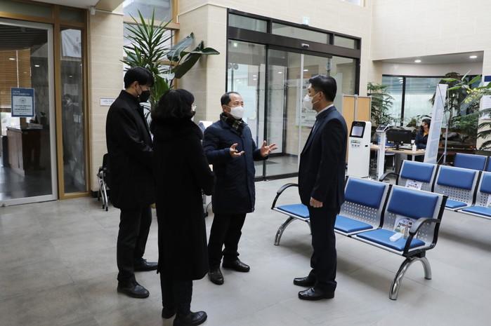 김현광 제21대 경기 수원시 팔달구청장은 3일 취임 후 첫 기관 방문지로 대한노인회 팔달구지회와 팔달노인복지관을 방문해 노인복지서비스와 기관 현황 등에 관한 사항을 청취했다. 사진은 이날 김 구청장(오른쪽 두 번째)이 관계자들과 대화를 하고 있는 모습. (사진제공=팔달구청)