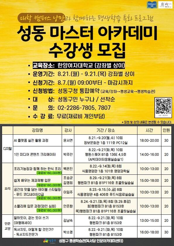 | ▲ 성동 마스터 아카데미 수강생 모집 홍보물. (사진=성동구청 제공) |