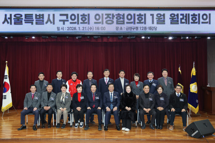 [시민일보 = 여영준 기자] 서울 금천구의회(의장 이인식)가 최근 구청 12층 대강당에서 서울시 구의회 의장협의회 1월 월례회의를 개최했다.
