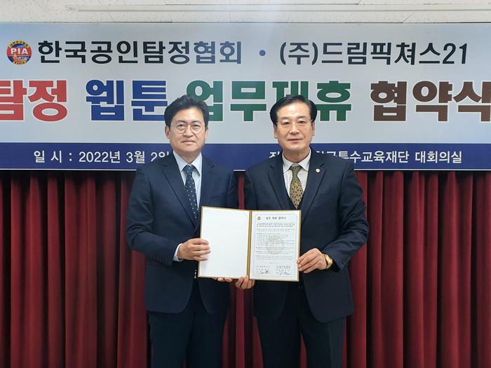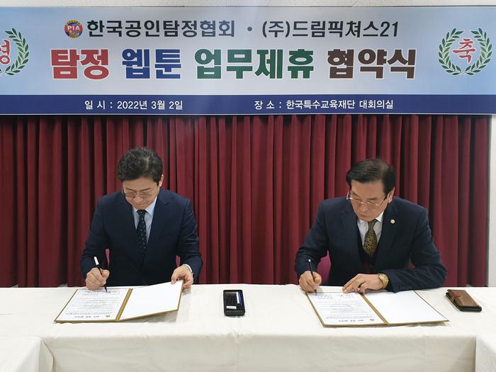 양 기관은 한국 탐정산업 발전에 관한 전문적이고 새로운 도약을 위하여 탐정산업 전문인력 양성과 웹툰. 에니메이션 제작 관련 업무협약을 체결하였으며 이 자리에는 하금석 한국공인탐정협회 회장, 김일권 (주)드림픽쳐스21 대표 등 관계자들이 참석하여 두 단체의 협약을 축하하였다.