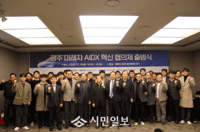 | ▲ 광주 미래차 AIDX 혁신 협의체 출범식 기념촬영 / 광주광역시 제공 |