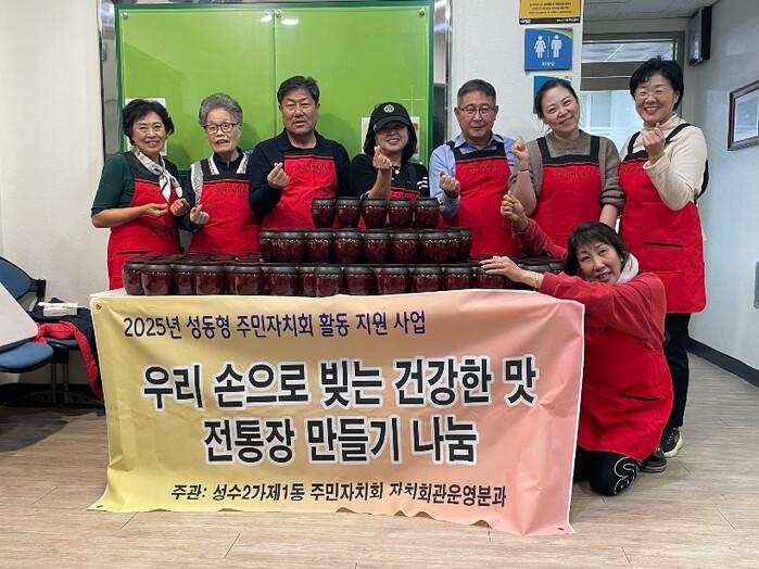 [시민일보 = 박소진 기자] 성동구(구청장 정원오) 성수2가제1동 주민자치회가 최근 지역 노인과 어려운 이웃을 위해 ‘건강한 전통 밥상 – 이웃과 식구 만들기’ 사업의 일환으로 전통장 만들기 나눔을 추진했다.