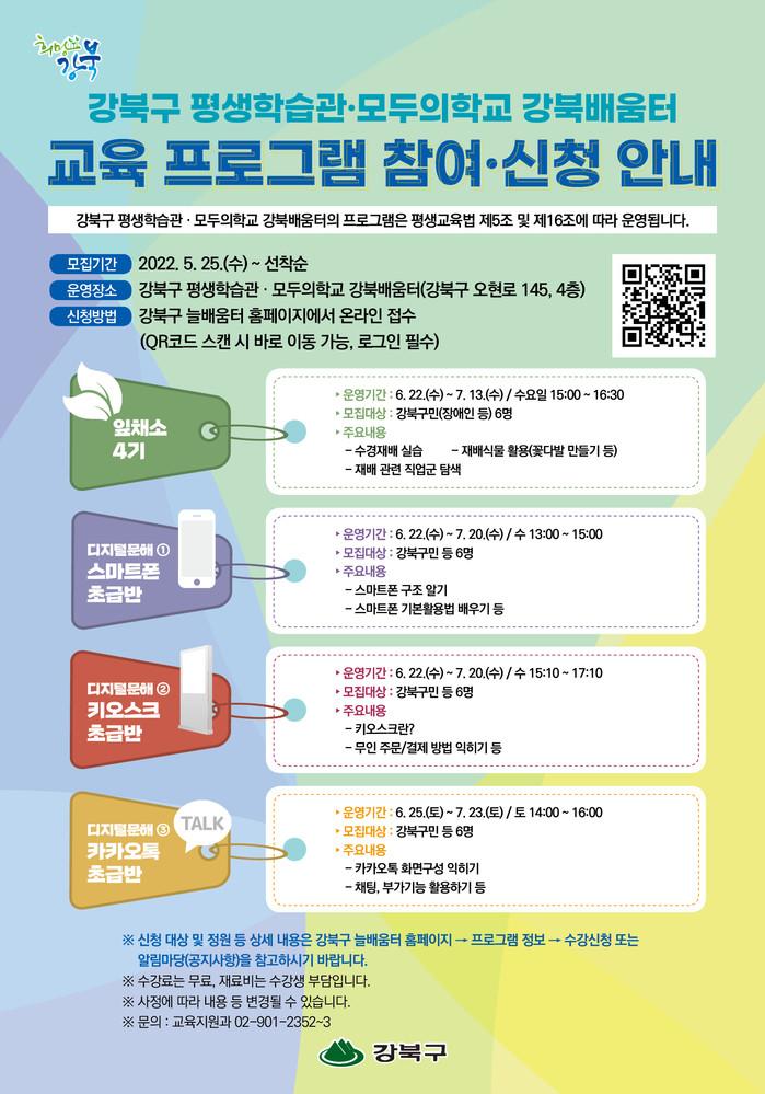 | ▲ 6월 디지털문해교육 프로그램 홍보 포스터. (사진제공=강북구청) |