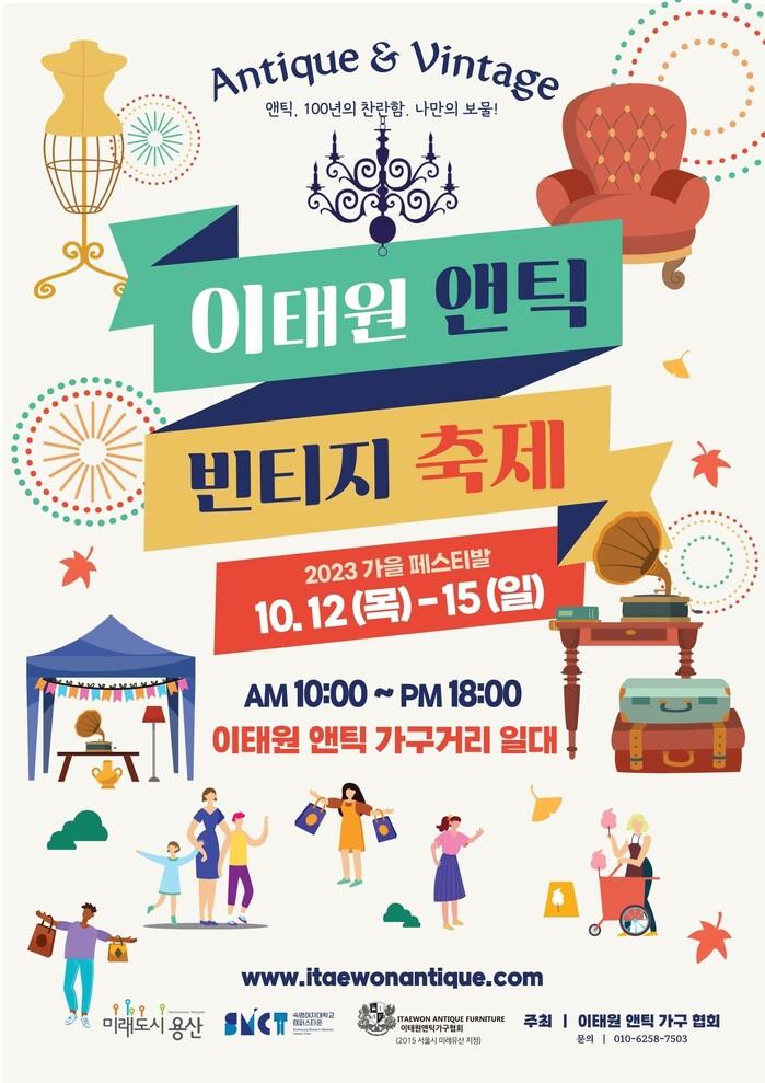 이태원 앤틱 빈티지 페스티벌은 매년 2번씩 이태원 앤틱가구거리(이태원역~청화아파트~사우리아라비아대사관) 전역에서 열린다.