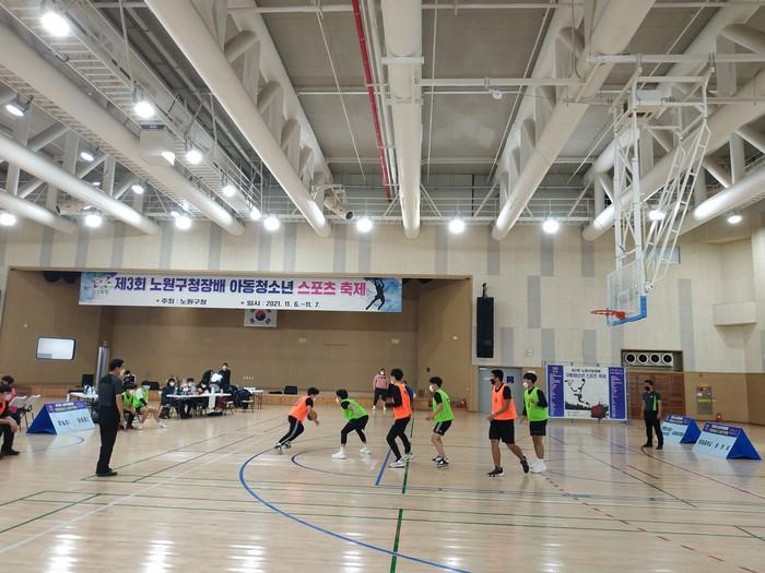 | ▲ 2021년 열린 아동청소년 스포츠 축제 3대3 농구경기 모습. (사진제공=노원구청) |