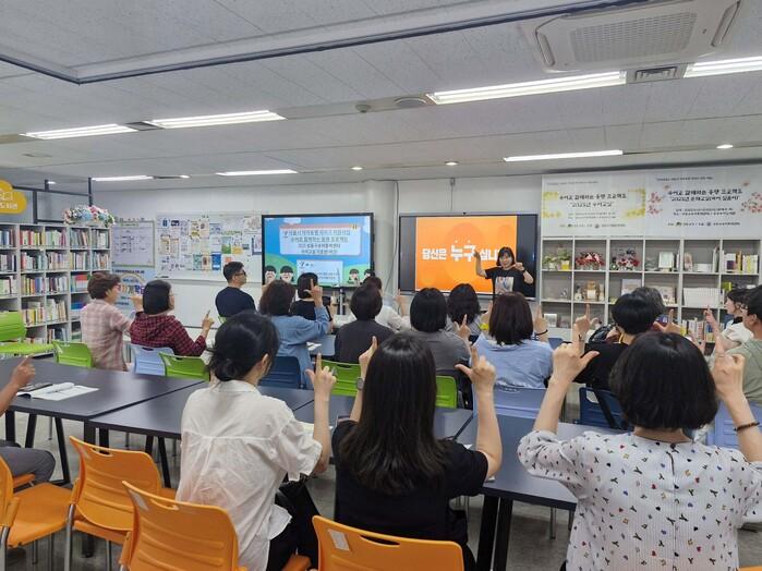 | ▲ ‘수어로 함께하는 동행 프로젝트’ 진행하는 모습. (사진=성동구청 제공) |