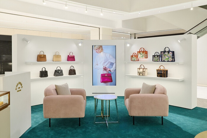 매장에는 콜롬보의 주력 제품인 크로커 백 라인을 포함해 확장된 카프 가죽 라인, 캔버스 토트백, 참 장식 등 다양한 카테고리의 제품이 배치됐다.