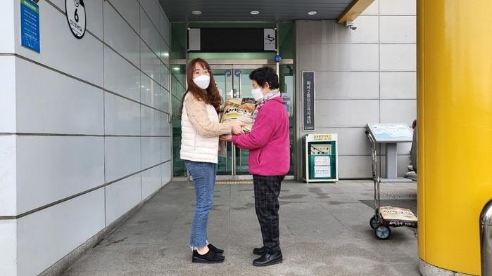 경기 수원시 팔달구 화서2동 지역사회보장협의체는 이달 13~15일 겨울철 복지사각지대 지원을 위한 이웃돕기를 추진한다. 후원물품은 서광감리교회가 지원한 백미 10kg·24포와 익명 기부받은 백미 10kg·30포 등 총 100포로 지역내 저소득 홀몸노인 등에 배부될 예정이다. 사진은 대상가구에 쌀을 전달하고 있는 모습. (사진제공=팔달구청)