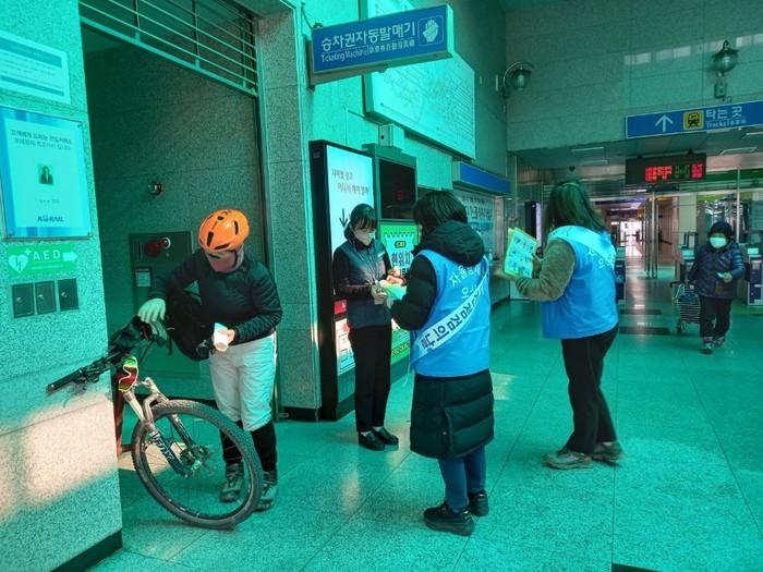 경기 오산시는 최근 세마역에서 '봄철 산불·화재 및 안전사고를 예방합시다!'를 주제로 안전점검의 날 캠페인을 실시했다. 사진은 이날 참여자들이 시민들을 대상으로 캠페인을 진행하는 모습. (사진제공=오산시청)